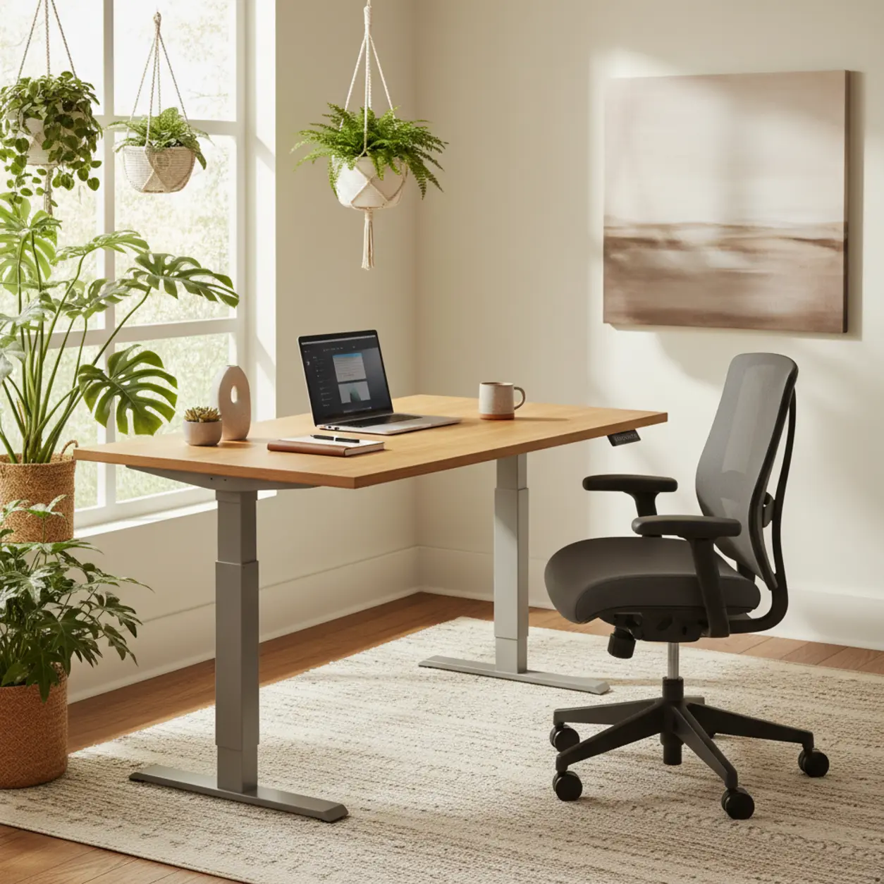 Comfort mag hierbij best samengaan met design. Zoek naar stoelen die verstelbaar zijn in de lendensteun, armleuningen en zithoogte, maar die qua stoffering en kleur passen bij de rustgevende sfeer die je probeert te creëren. Een stoel die esthetisch aansluit bij je bureau en vloerkleed zorgt voor visuele rust, wat onbewust bijdraagt aan minder stress tijdens je werkdag. Voor extra comfort tijdens het staan raden wij overigens ook aan om te kijken naar een goede ondergrond, zoals beschreven in onze review van de Flexispot anti-vermoeidheidsmat.