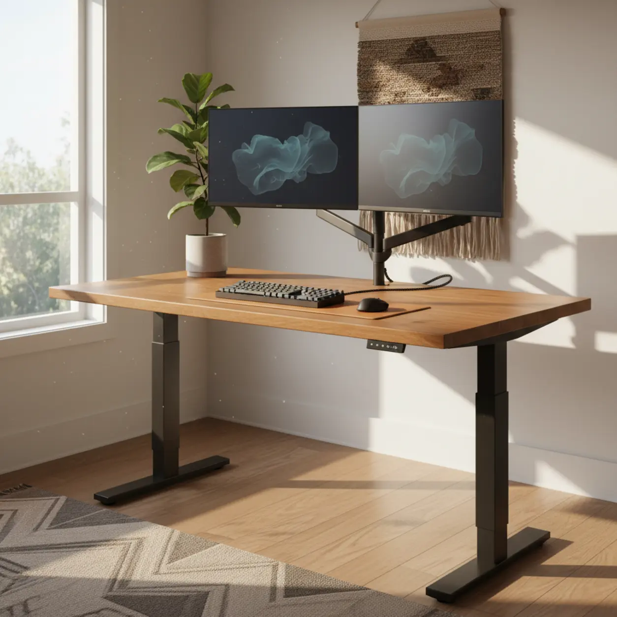 Fabrikanten smijten graag met getallen: “Hefvermogen tot 150 kg!” Wat ze er vaak niet bij vertellen, is dat je het gewicht van je eigen bureaublad daar nog van af moet trekken. Heb je een prachtig massief eiken blad op het oog? Dat kan zomaar 25 tot 40 kilo wegen. Trek daar twee monitoren, een zware monitorarm, een pc-houder en je leunende armen bij af, en je komt aardig in de buurt van de limiet van goedkopere motoren.