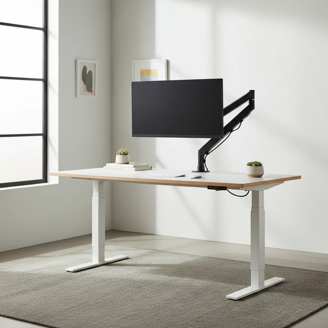 Het resultaat is dat de monitor in een perfect rechte lijn omhoog en omlaag beweegt. Geen boog, geen afwijking naar links of rechts. Het scherm blijft exact gecentreerd boven je werkplek, ongeacht of je zit of staat. Dit maakt het de ideale partner voor wie een beste sta bureau kiezen gids heeft gevolgd en nu de puntjes op de i wil zetten qua ergonomie.